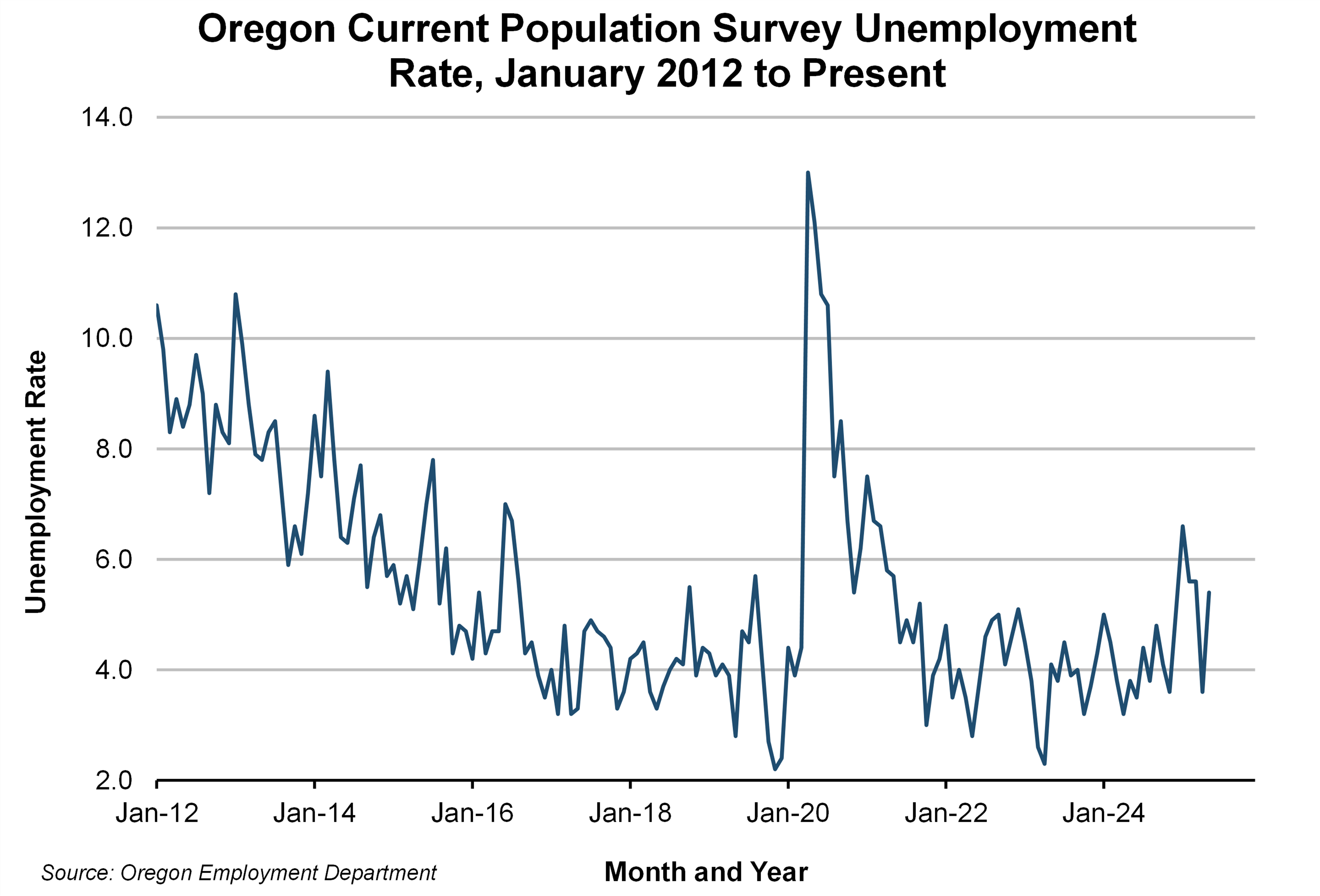 July 09, 2025This article examines the technical methods used to compute Oregon’s unemployment rate that is reported by the Oregon Employment Department each month. The unemployment rate is produced in cooperation with the U.S. Bureau of Labor Statistics (BLS) in the Local Area Unemployment Statistics (LAUS) program. LAUS is a Federal-State cooperative program. Each state and the District of Columbia use the same methodology to compute the unemployment rate.