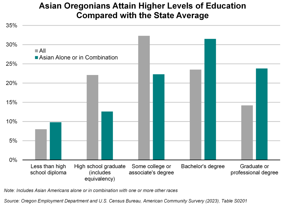 Educational Attainment Among Asian Oregonians Exceeds State Averages