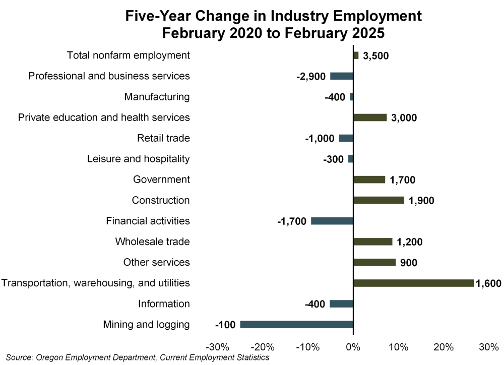 These figures are from the Current Employment Statistics (CES) program, which tracks nonfarm payroll jobs. The CES excludes farm labor, self-employed individuals, and unpaid family workers. Industry details are not published locally in some cases due to confidentiality protections. You can view and download the published CES data for Oregon at QualityInfo.org/ceest.