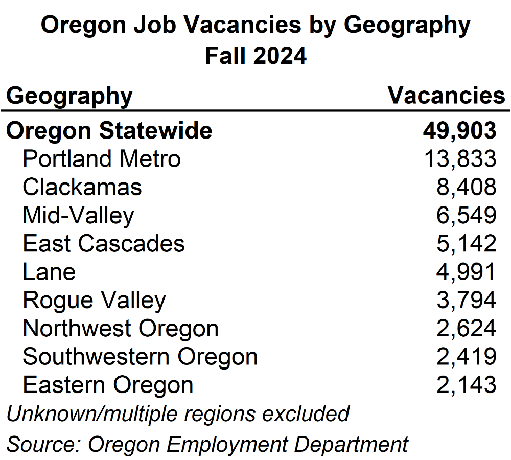More details about Oregon Job Vacancies are available on QualityInfo.org, on the publications page under Job Vacancy Survey.