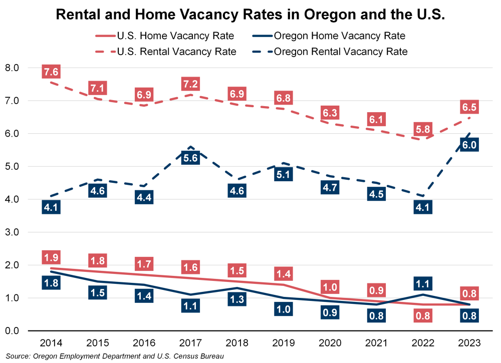 Graph showing rental and home vacancy rates in Oregon and the U.S.