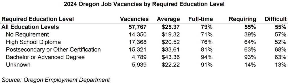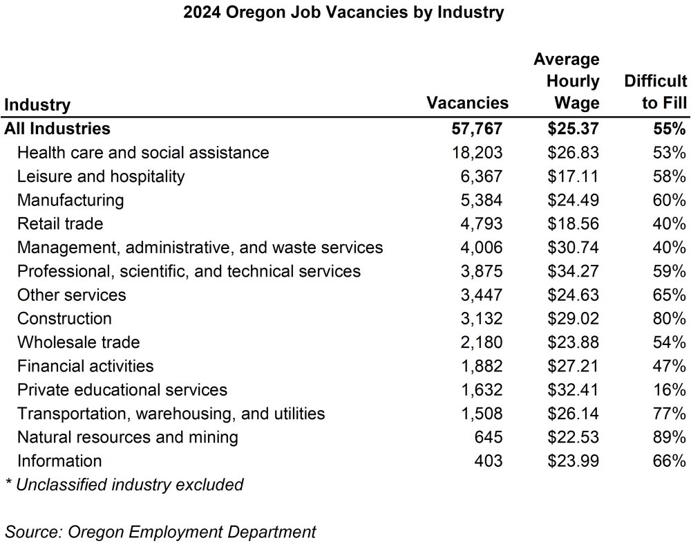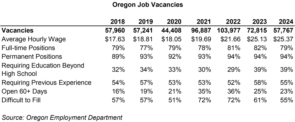 Oregon Job Vacancies: 2024 Hiring Fell to Pre-Pandemic Levels
