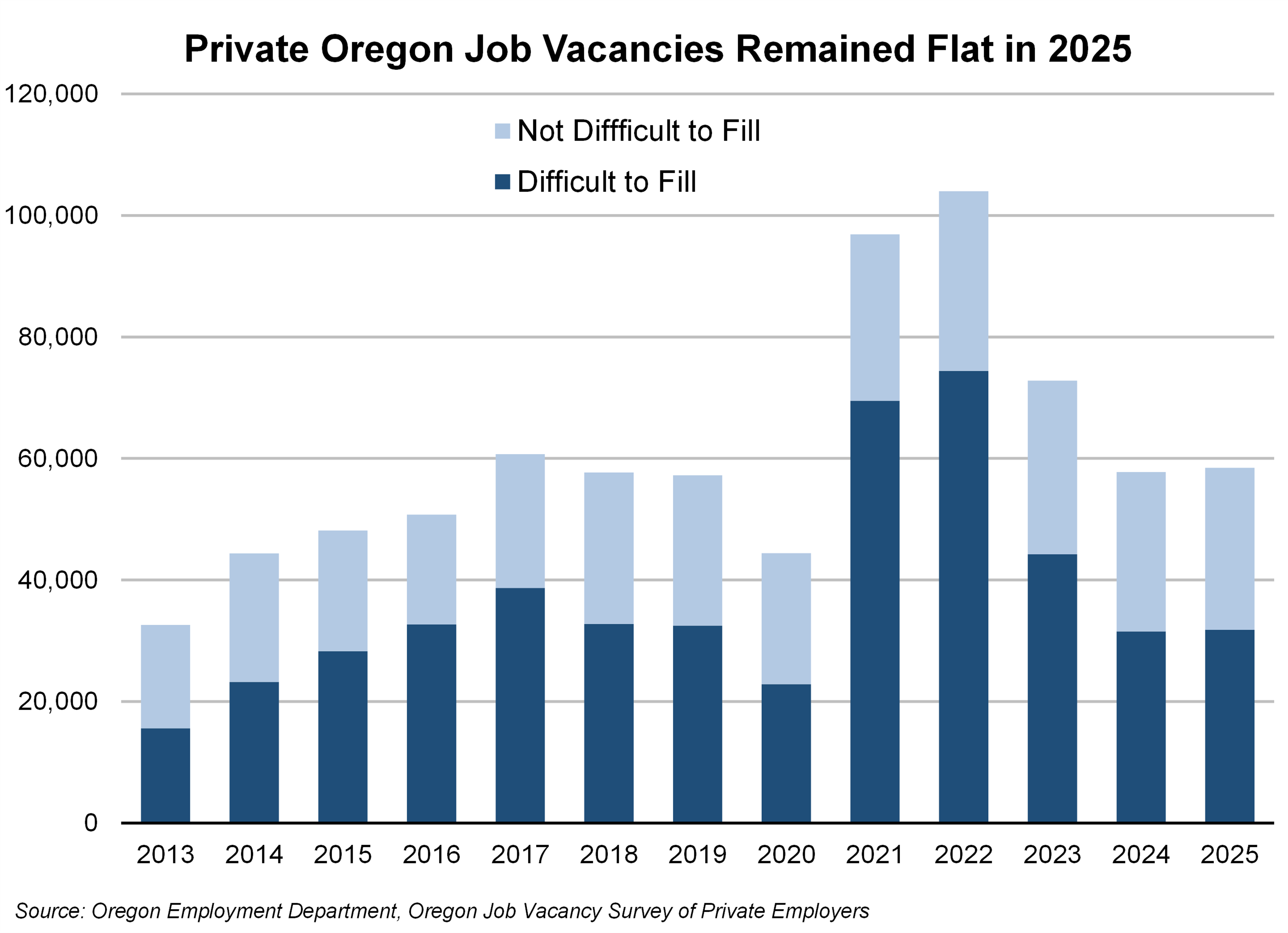 Oregon Private Job Vacancies: 2025 Job Vacancies Remained Flat