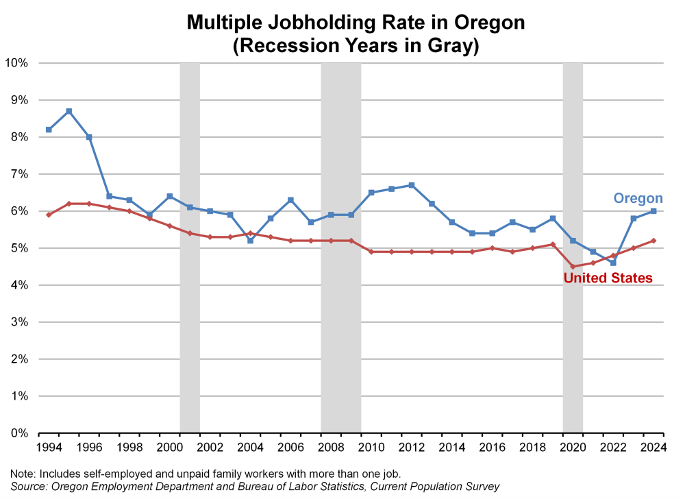 Oregonians More Likely to Work Multiple Jobs in 2024