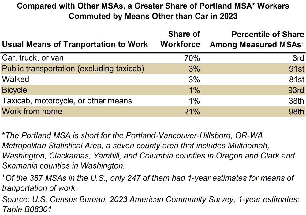 Fewer People Drive to Work in Portland Metro Compared with Other Metro Areas