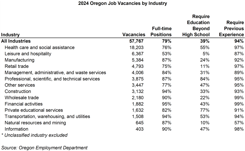 Oregon Job Vacancies: 2024 Hiring Fell to Pre-Pandemic Levels